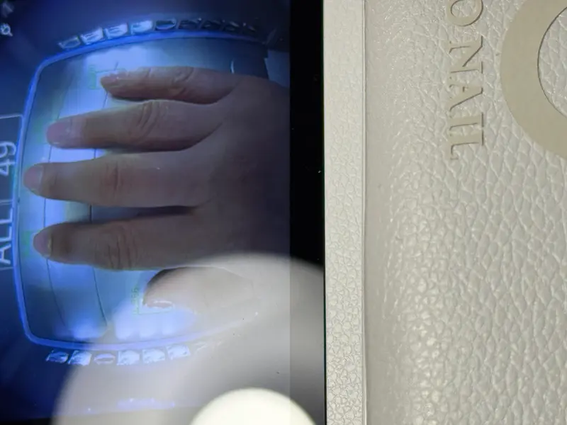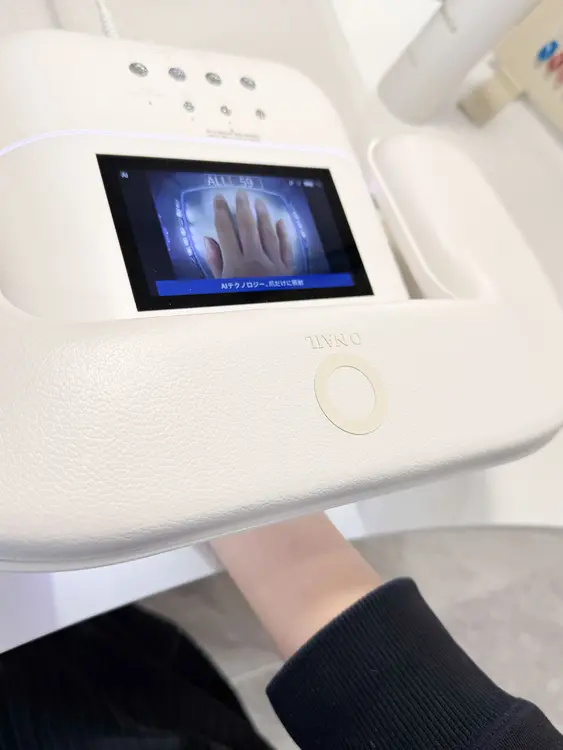 松本さん:この機械はAIが手の形を認識して、爪の部分だけに光を当てます。余計な日焼けや乾燥を防げるんです。