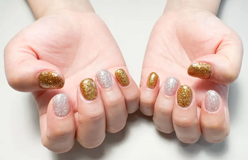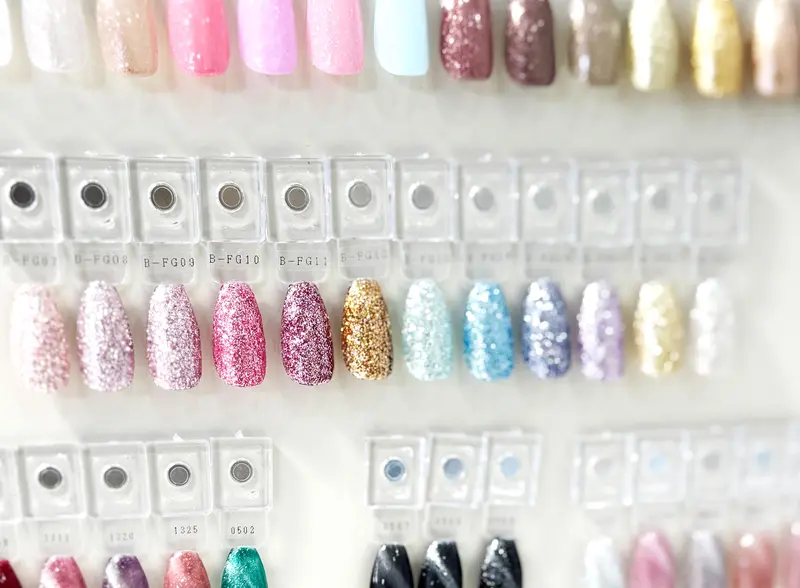 特殊な反射パウダーが入っていて、自然光では上品なラメ、フラッシュや強い光が当たるとパキーンと発光したように輝くネイル。普通のラメより奥行きがあって、写真や動画で撮るとびっくりするほどキラキラに写ります!