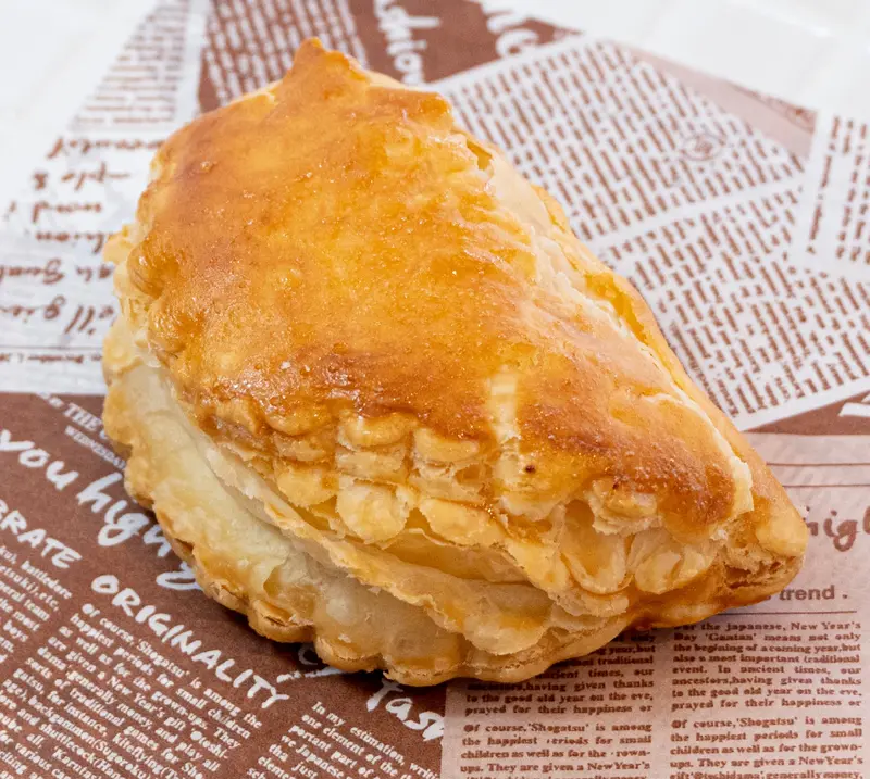 「3月のメニューは、アップルパイ、アップルカスタードパイ、苺カスタードパイ(共に400円)、つぶあんパイ/こしあんパイ(350円)、ボロネーゼパイ(450円)、キーマカレー&ソーセージパイ(450円)、梅角煮パイ(500円)などです」とのこと。