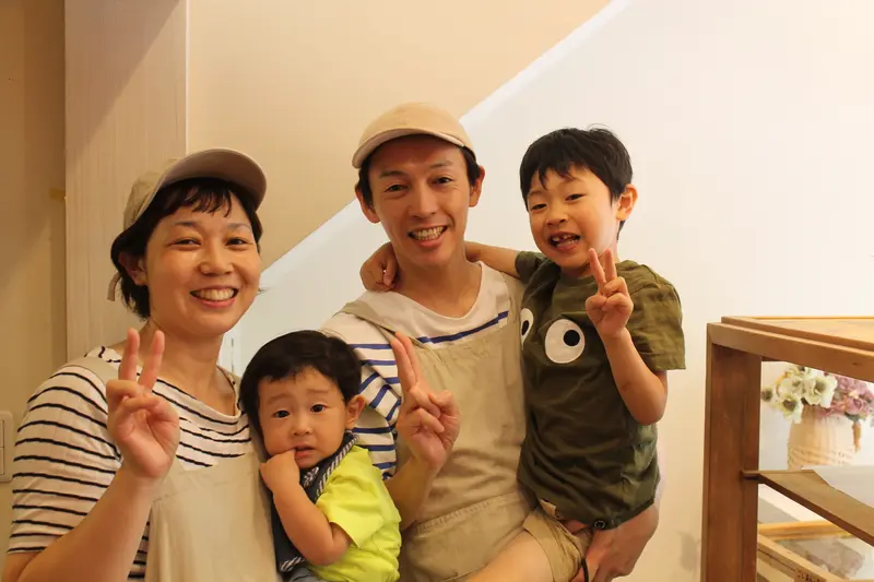 仲良し中尾さん一家(左から、桃子さん、虎士朗君、龍亮さん、虎太朗君)