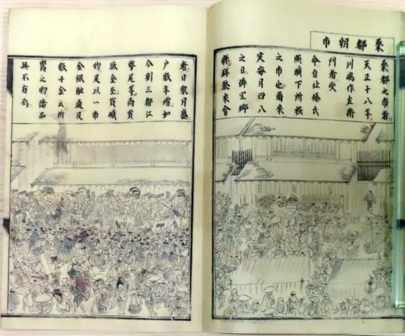 織物市の賑わい。桑都日記より(極楽寺所蔵)
