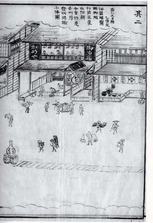 八王子宿のようす。八王子名勝志より(八王子郷土資料館発行)