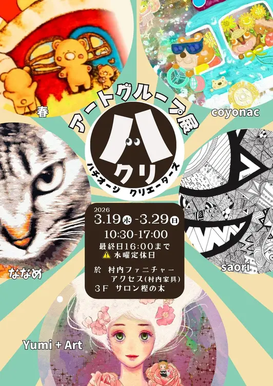 また、3月19日から29日まで、八王子市内のムラウチファニチャーアクセス(村内家具八王子市左入町787)3階「サロン樫の木」で開催されるグループ展にも参加予定です(水曜定休)。